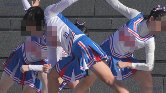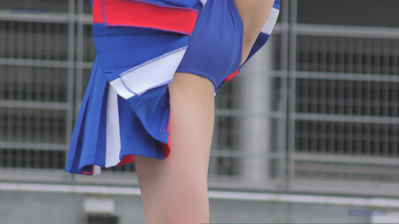38分ごろより別会場へ、青・白チアユニ娘のステージ演技!ツルテカ短め青スパがリズムに合わせてコンニチワ~!とってもキュート!