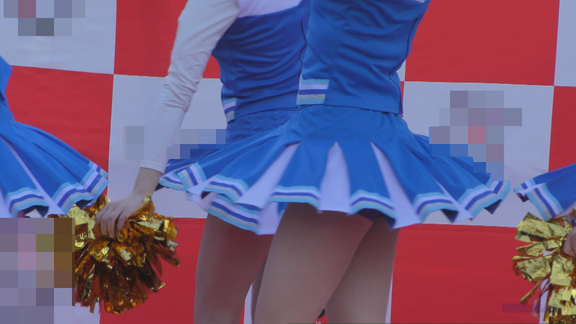 22分ごろより別会場へ参ります。最初の登場の別青・白チアユニ娘が登場!チアユニにサンタ帽がとってもプリティ!ハイキック・回転シーンでは短め青スパがジャンジャンお目見えです!!!