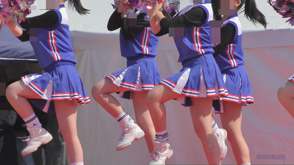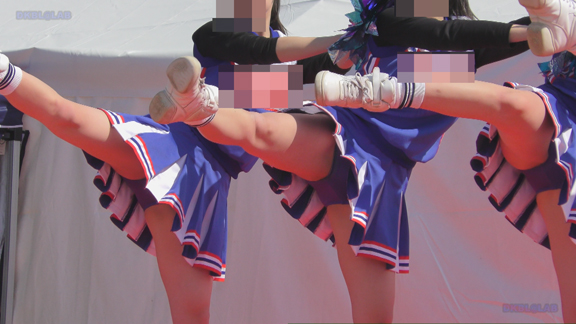 16分ごろより別会場へ参ります。こちらは青・白チアユニ娘のチームの平場からステージへの演技の模様!演技中のハイキック・回転シーンではお目見えタイム!!青Vアンダーがコンニチワンワン!!!長尺でお楽しみいただけます!