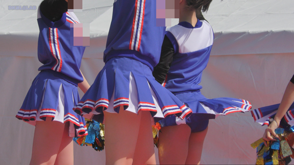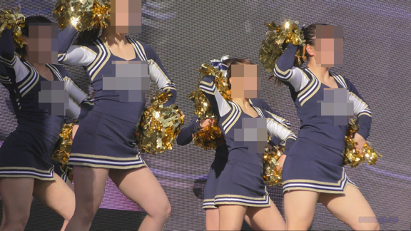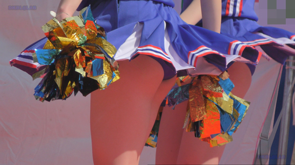 16分ごろより別会場へ参ります。こちらは青・白チアユニ娘のチームの平場からステージへの演技の模様!演技中のハイキック・回転シーンではお目見えタイム!!青Vアンダーがコンニチワンワン!!!長尺でお楽しみいただけます!