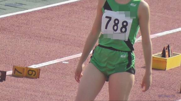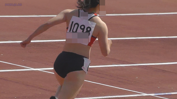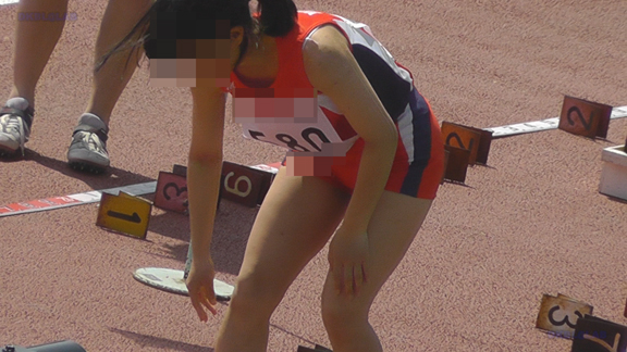 短距離走のシーンから、素朴な娘がスターティングブロックを整えるシーンから始まります!