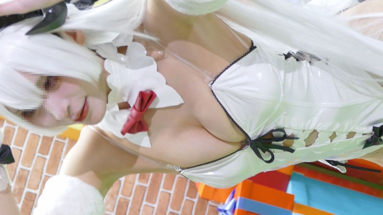 白&黒巨乳ちゃんバニー 相変わらず胸の谷間とハミパンしまくり