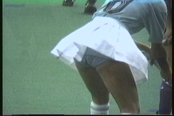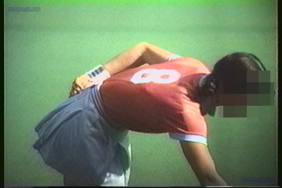 白スコートにVアンダー、そして薄手のポロシャツとなかなかの迫力!パタパタスコートがめくれ、上はバインバインに揺れております!!!